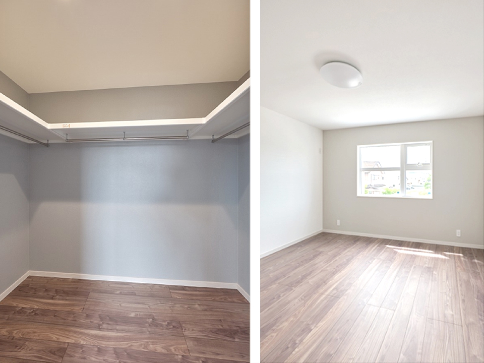 寝室の隣に3帖のWICを配置。身支度や片付けがスムーズに行える便利な生活動線が魅力。