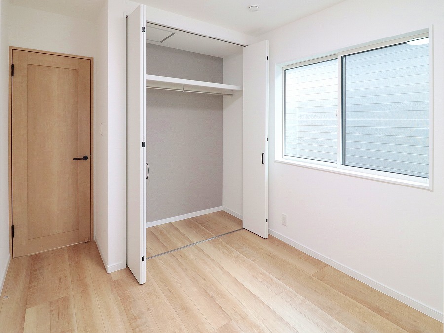 キッチン奥には洗面室、さらにその隣にはファミリークローゼットを配置。移動の少ない動線設計で、毎日の家事がスムーズに。ファミリークローゼットには使いやすいハンガーパイプと作業台を設け、洗濯・収納・身支度が一か所で完結する便利な空間に仕上げました。