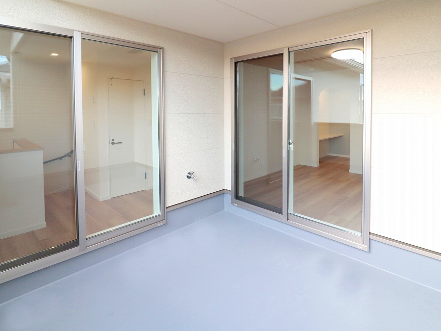 約4.5帖の広さを確保したバルコニーは、寝室と2階ホールの両方からアクセスできる2WAY仕様。