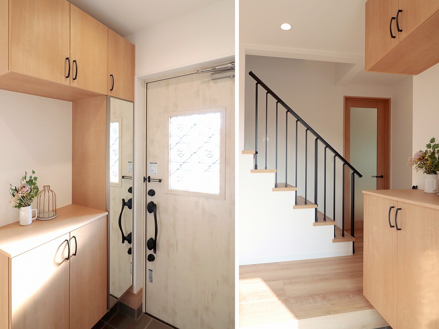 コの字型のシューズボックスは収納力も抜群。ブーツなど高さのある靴もすっきり片付けられます。