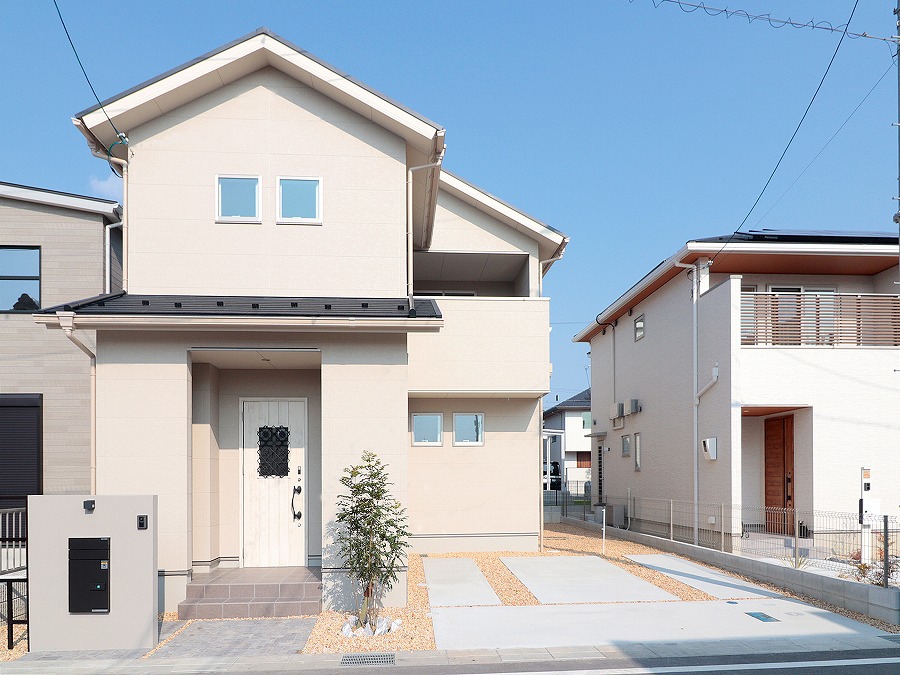 外壁には、モルタル調の質感が魅力の「シックイフラット」を採用。砂壁調のざらりとした肌合いが、やさしく温かみのある表情を生み出し、無機質になりがちな外観にナチュラルなアクセントを添えています。