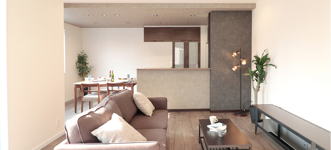 落ち着いた色味と素材感の調和にこだわり、住まい全体でヴィンテージスタイルの世界観を丁寧に表現しました。また、横並びダイニングキッチンから洗面室へとつながる一直線の動線や、空間同士が心地よくつながるレイアウトにも細やかな配慮を。家事のしやすさと暮らしの快適さを両立できるよう設計を重ね、日々の暮らしに寄り添いながら長く愛着を持って住んでいただける住まいを目指しました。