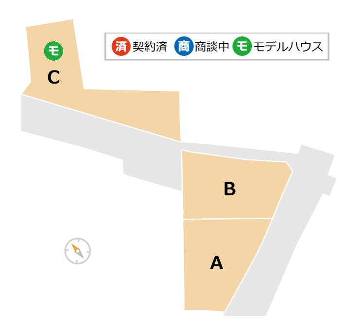 建築条件付宅地(停止条件付)・・・当社にて3ヶ月以内に建築請負契約を条件として販売いたします。不成立の場合前金等全額無利息にて返却致します。