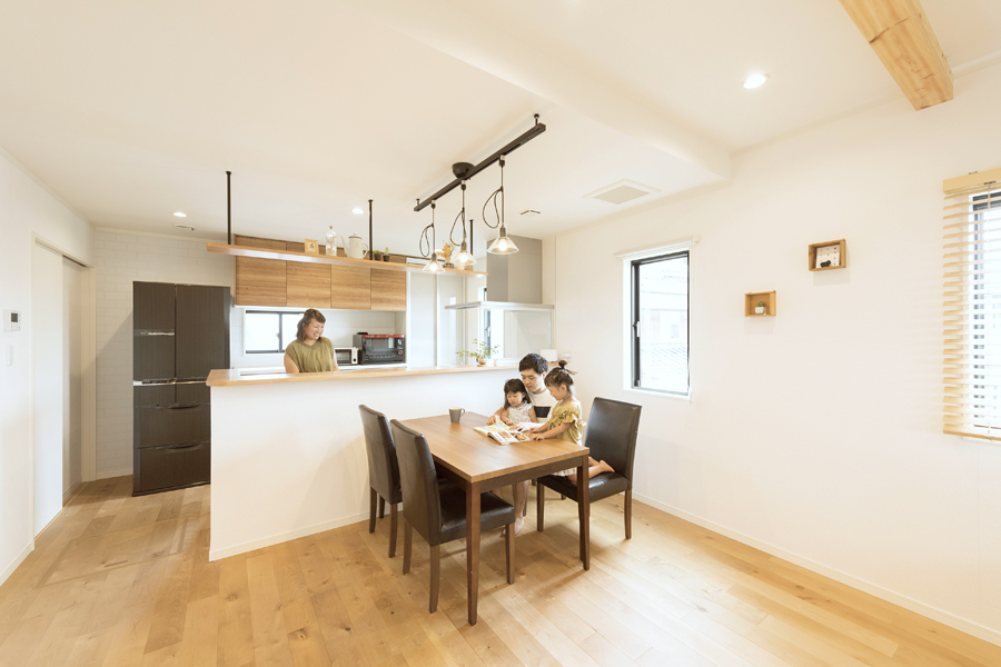 正直に言うと全部が苦労でしたが、それも含めて楽しかったです!SNSで調べて良いアイディアを見つけては夫婦で共有して決めていきました。最初から注文住宅と決めていたのでこだわりも強かったのですが、希望のオープンキッチンが標準で選べることに驚きました。他にも電動シャッターが標準であったり、標準仕様のレベルが高いと感じました。標準で十分な部分は費用をおさえて、こだわりたい部分はとことんこだわることができたので、何一つ妥協せずに家づくりを進める事が出来ました!