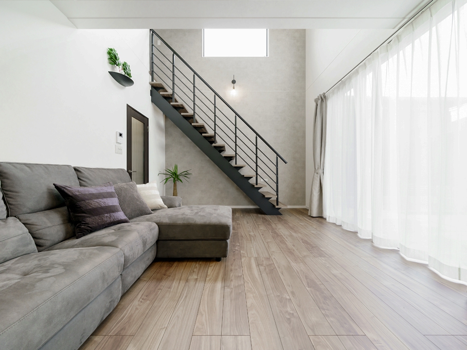 吹抜け階段のある明るいリビングで毎日気分があがります