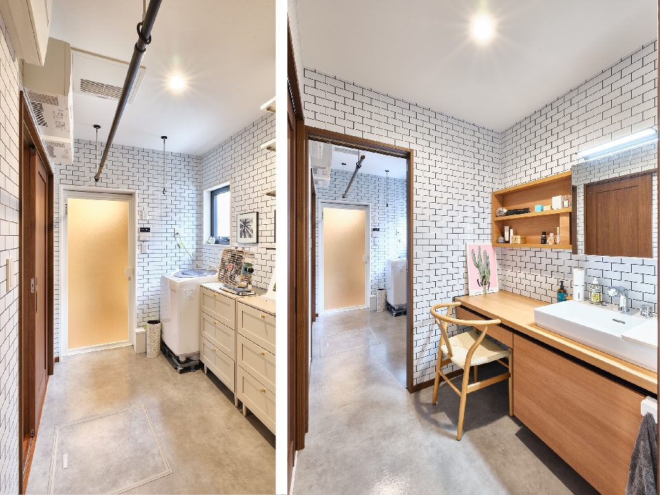 脱衣室と洗面室を一直線に配置することで、洗濯や身支度の動線がスムーズに。毎日の家事効率が高まり、暮らしやすさが向上します。