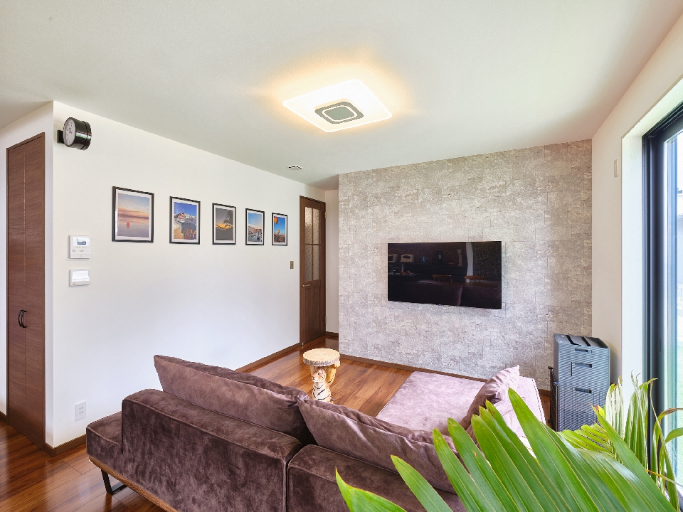 お気に入りのソファやTVなどの家具に合わせて空間全体を設計したリビング。家具とのバランスを考えた設計で、快適で美しい住まいを実現。