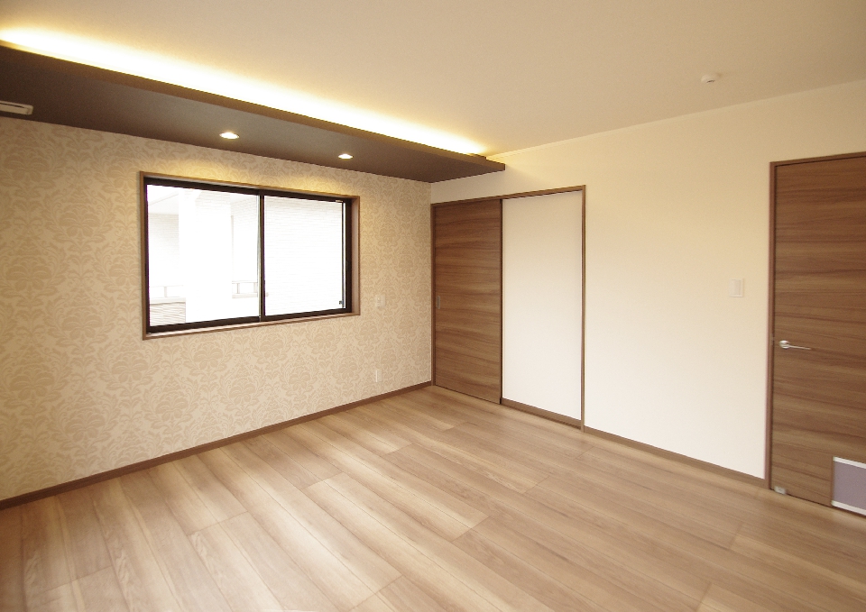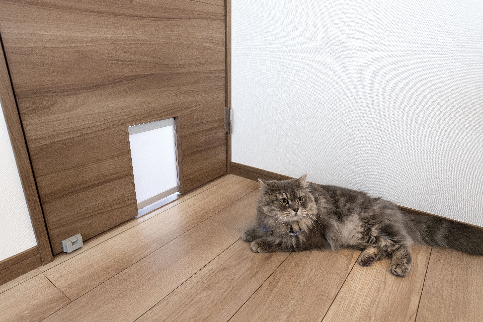 寝室の入口扉は、ペットが出入りできるペットドアを採用。ペットも自由に家中を行き来できます。そして、主寝室のベッドヘッドは間接照明で空間演出。プライベート空間にもこだわりました。
