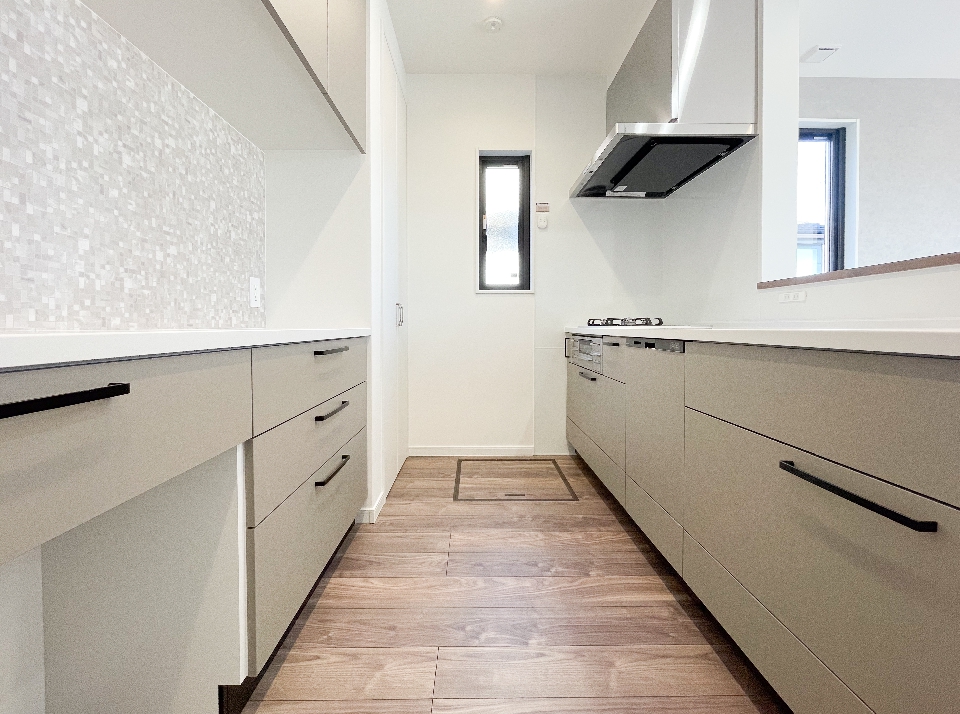 ・食洗器、浄水器内蔵システムキッチン、カップボード付き