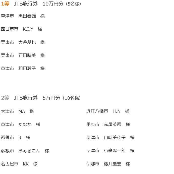 *同じ市にお住まいで同じイニシャルにてご応募頂いた方もおられます。
