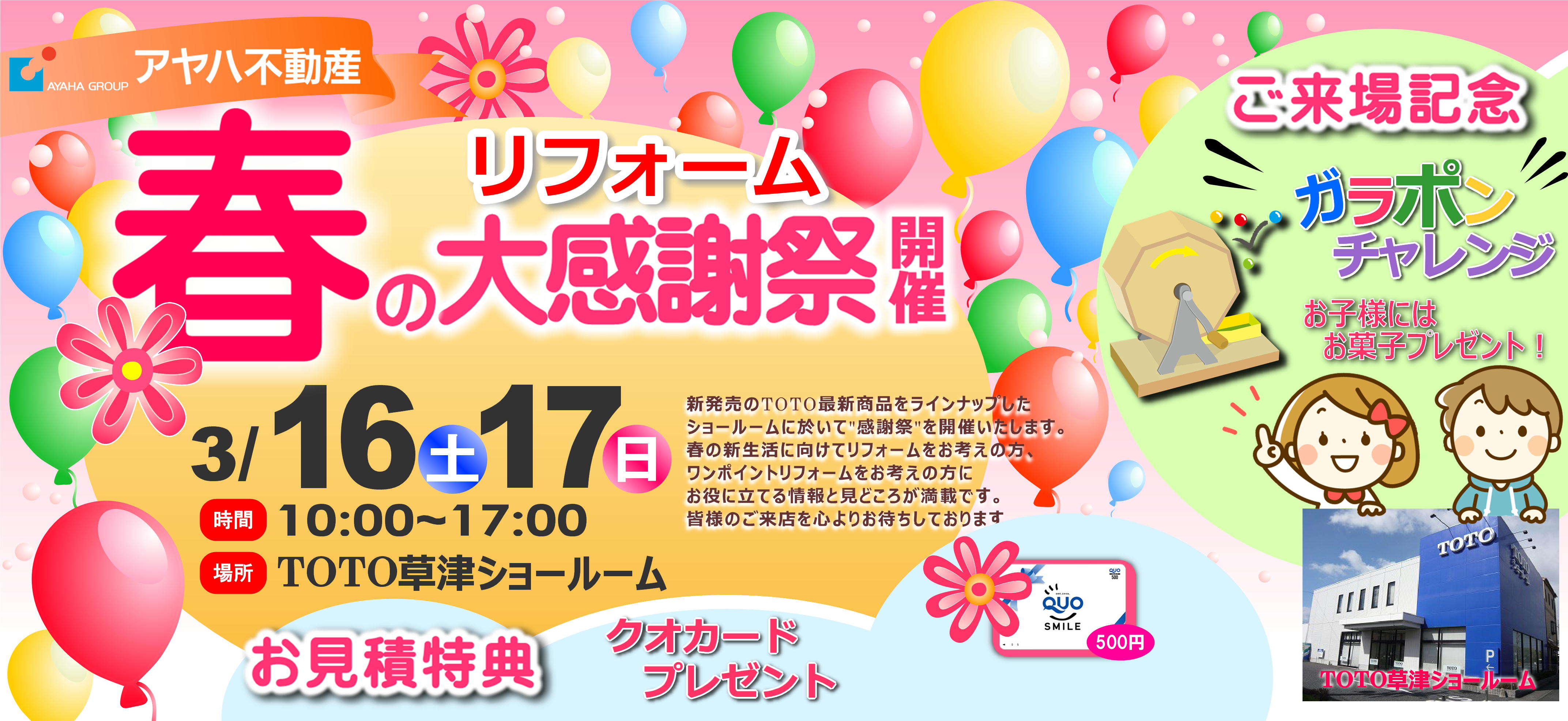 [終了しました]3/16(土)17(日)春のリフォーム感謝祭inTOTO草津ショールーム