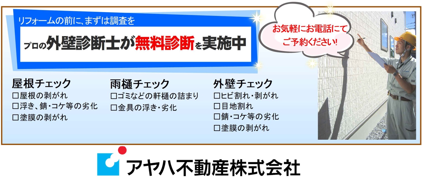 無料診断でご納得いただき、家のメンテナンスをご計画いただければと思います。お気軽にご相談お待ちしております。