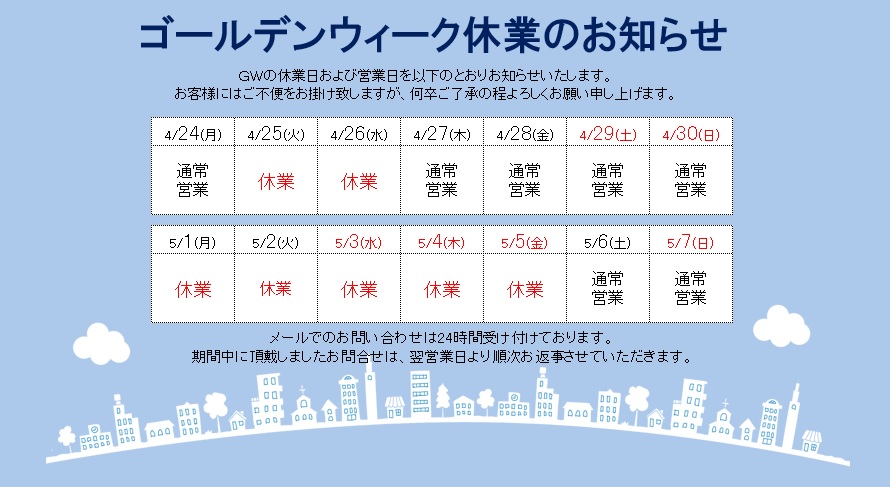 ゴールデンウィーク休業のお知らせ