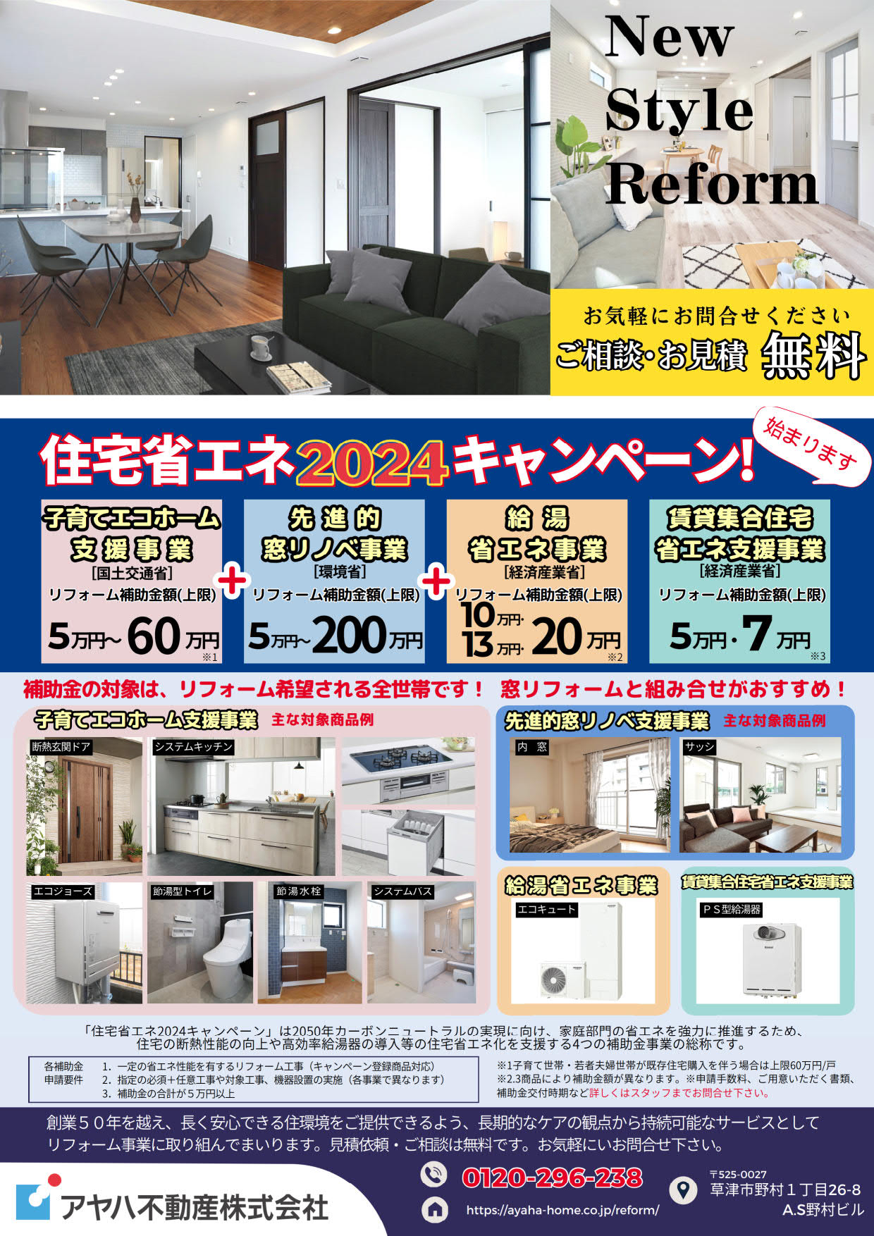 リフォーム補助金事業「住宅省エネ2024キャンペーン」申請承ります