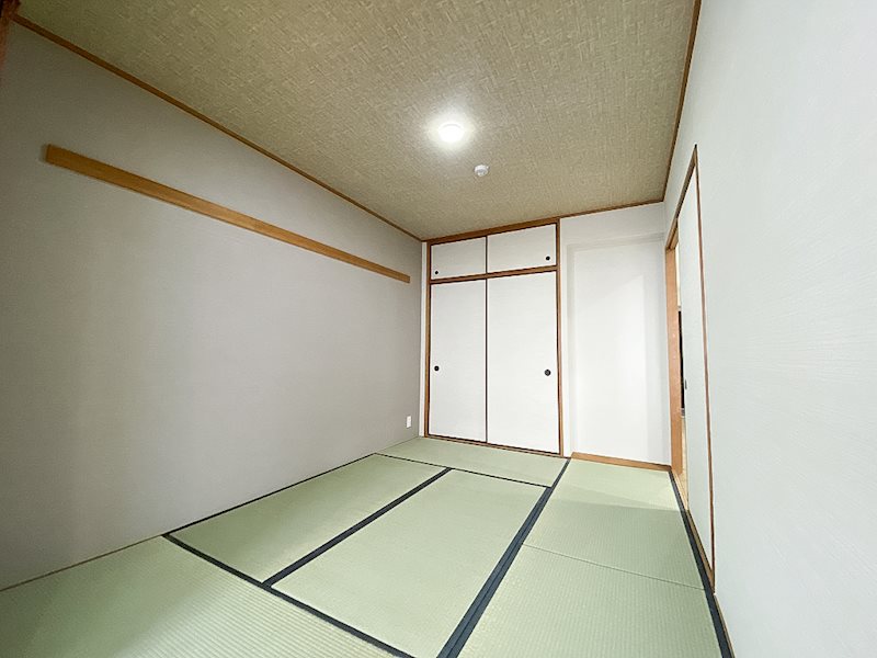 和室の押入部分は、クローゼット扉に交換し、ハンガーパイプを取付け寝室に使用できるようにしました。